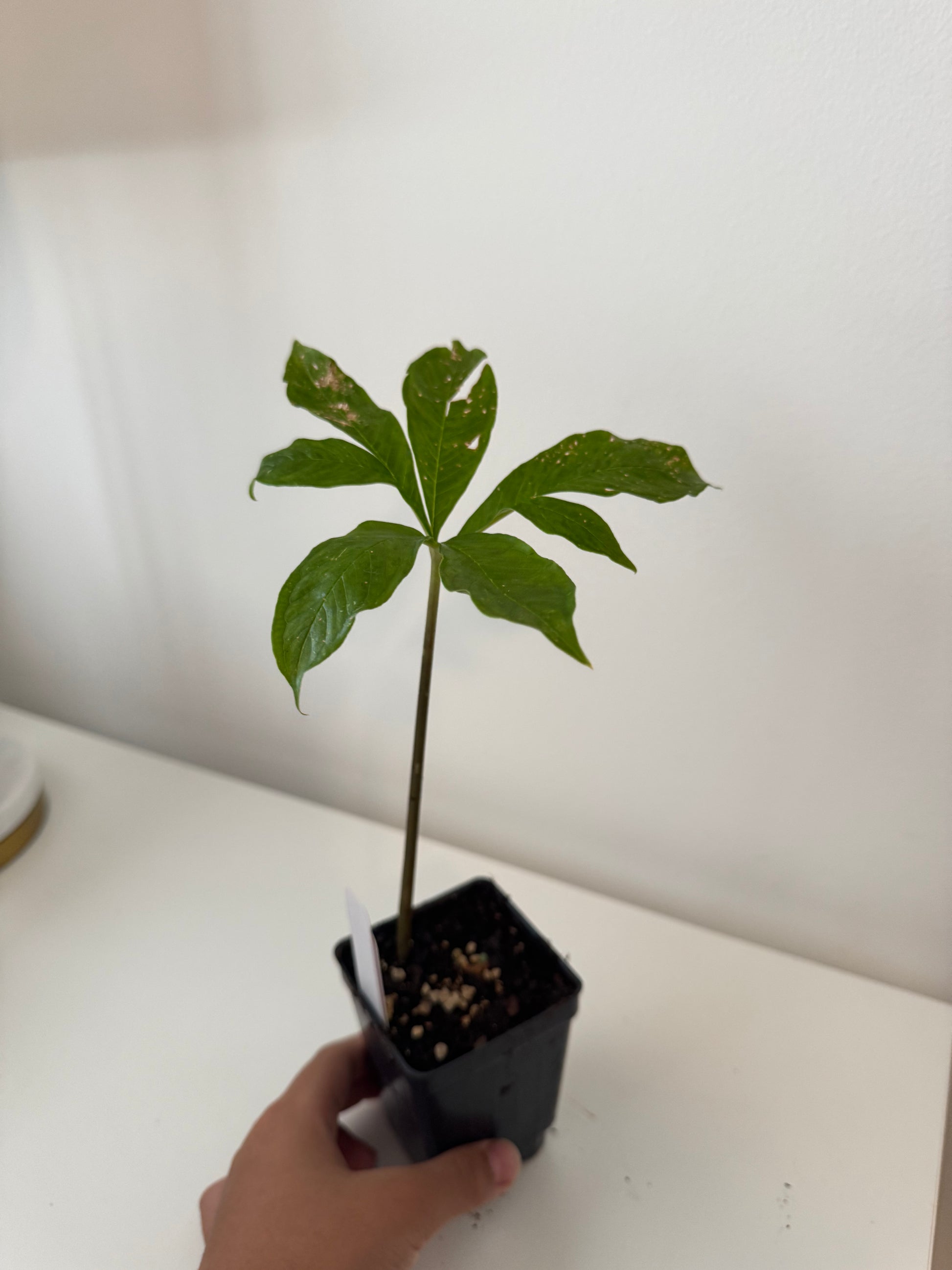 Amorphophallus Konbus, corpse flower 'Green Genes' {konjac x albus}